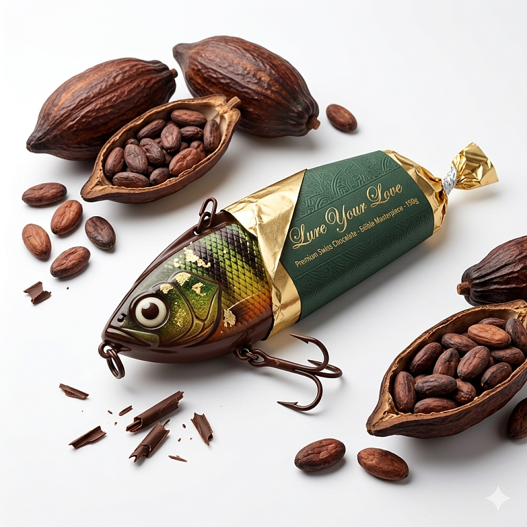 Вместо привычных металлических блесен и пластиковых воблеров, в коробках коллекционного издания скрываются точные копии легендарных приманок, выполненные из премиального шоколада.