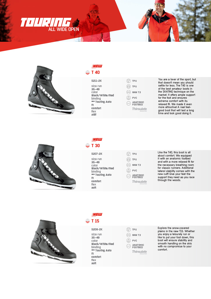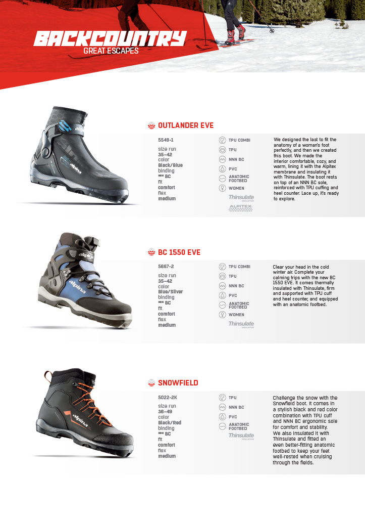 Каталог демонстрирует новинки и регулярный ассортимент лыжной обуви, представленной на российском рынке известным словенским производителем: